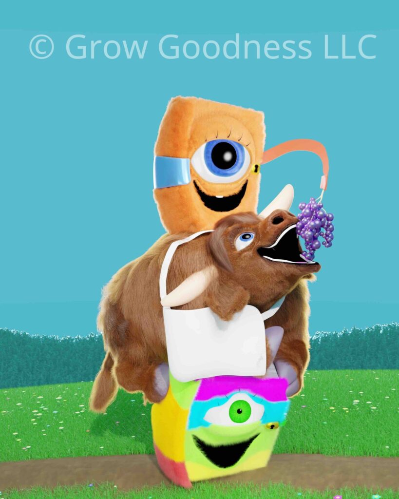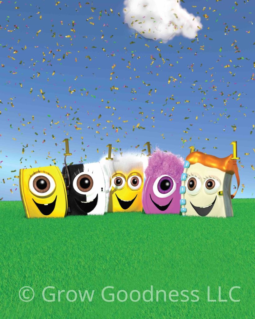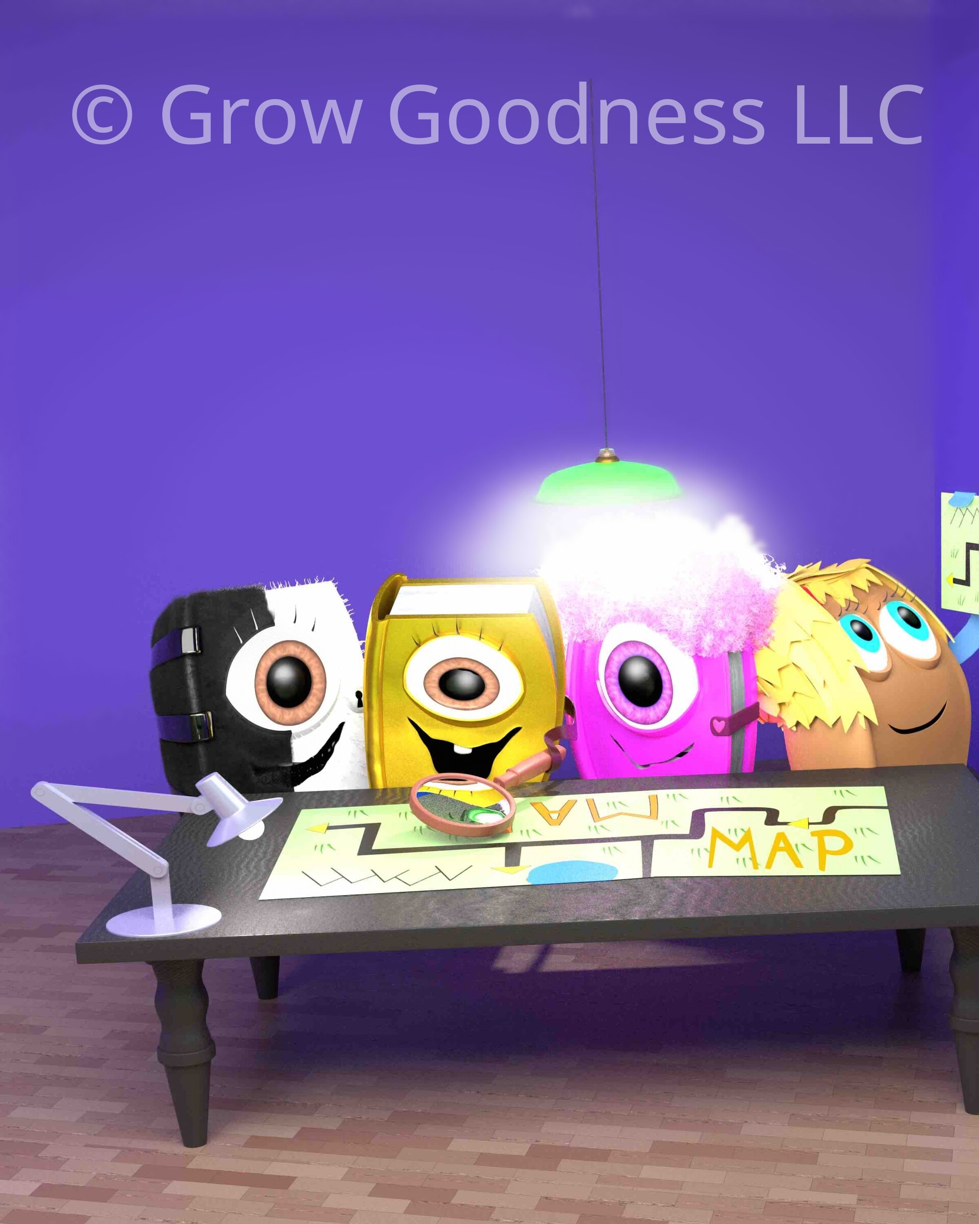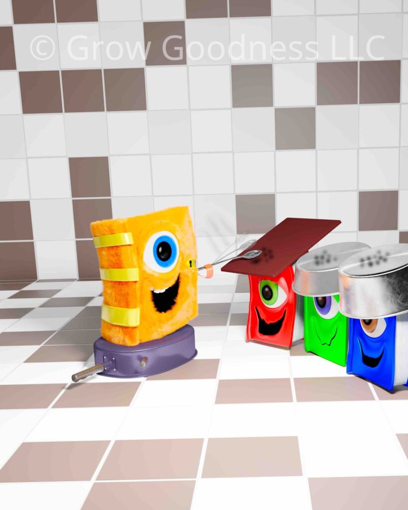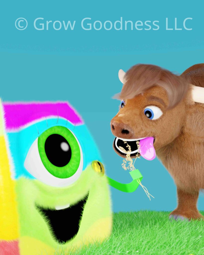 I was responsible for the art, video production and animation for Grow Goodness. In all, I illustrated 7 books, animated 10 short videos, and made 10 educational videos – over 200 illustrations and more than half an hour of animation. All of the props, materials, hair and fur, lighting, and character models are my own work. The book characters use a special rig that I designed.