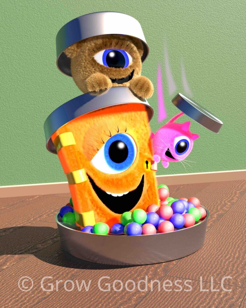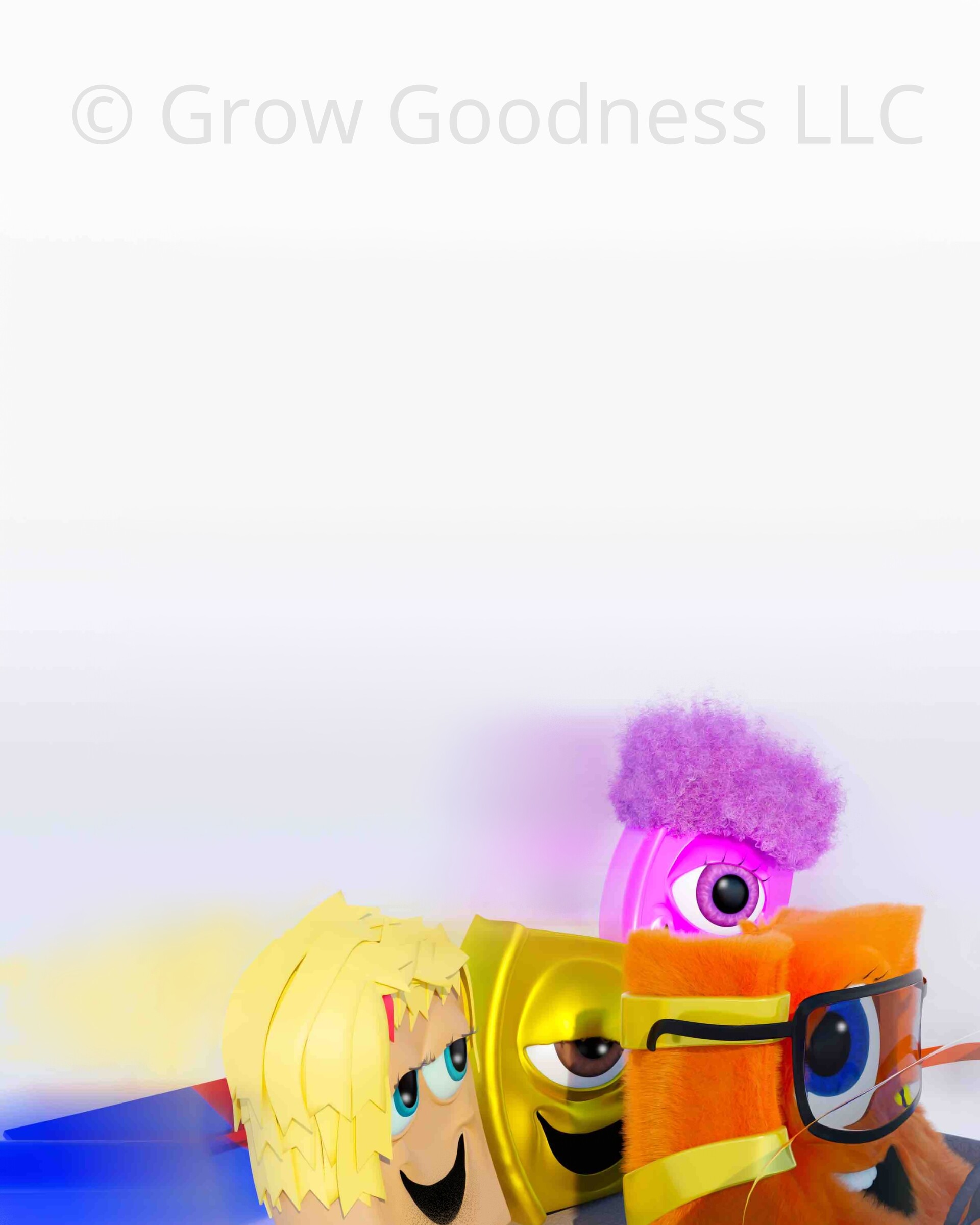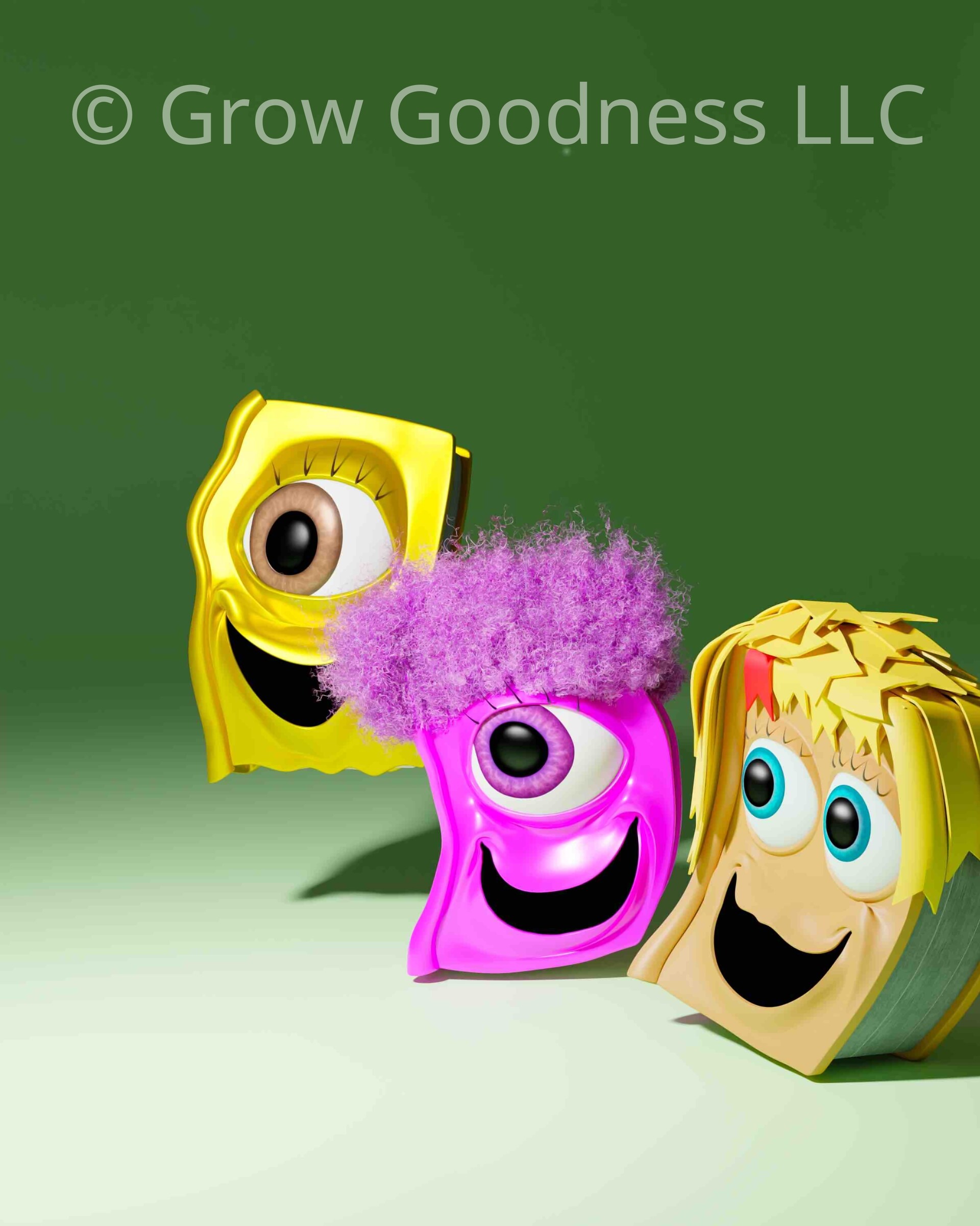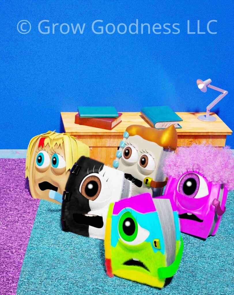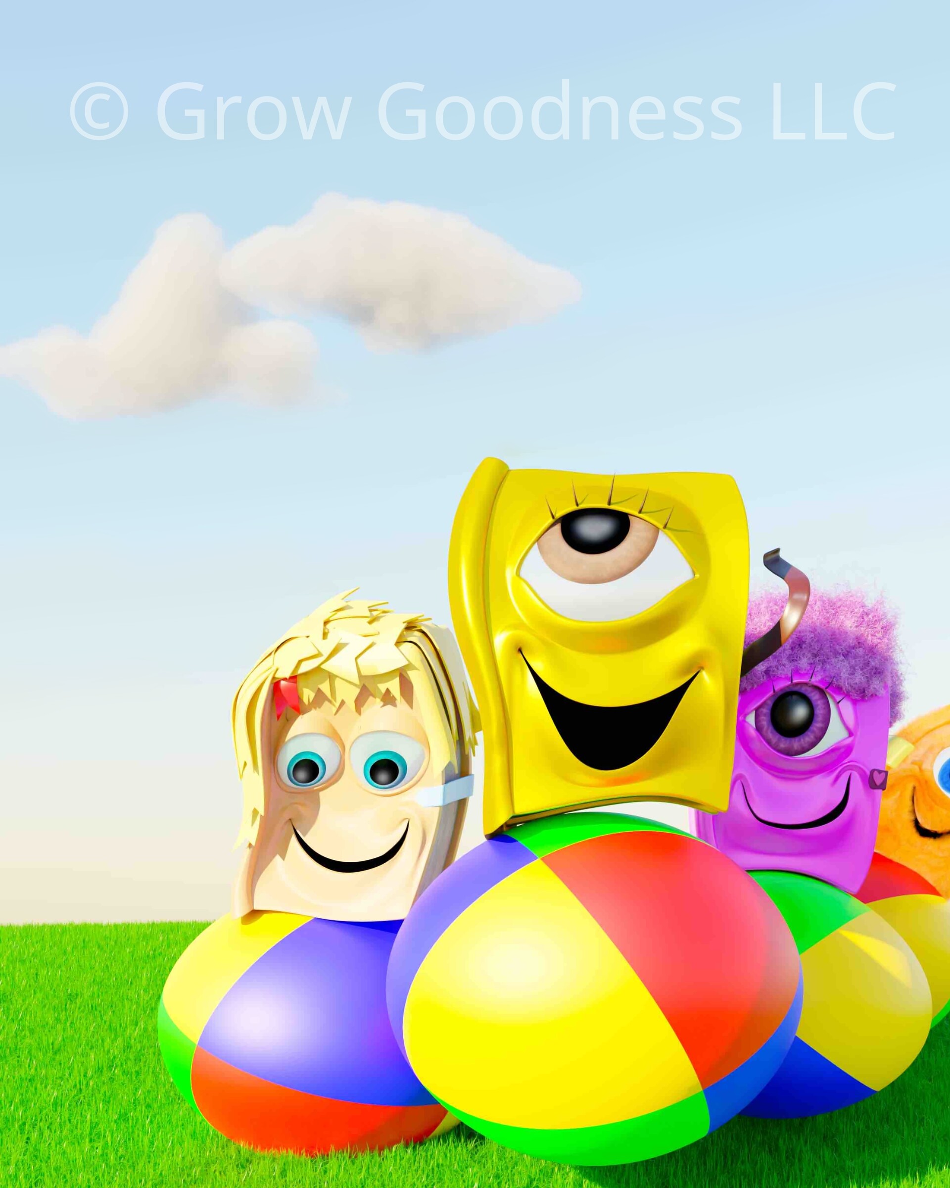 Here is just a small selection of Grow Goodness characters, most of these come from My Pal Bub. I designed and modeled them, created the hair, fur, feathers, and clothing, all the materials, and all rigs. The book is based on the main character of the series who was designed by Mr. Goodness.
